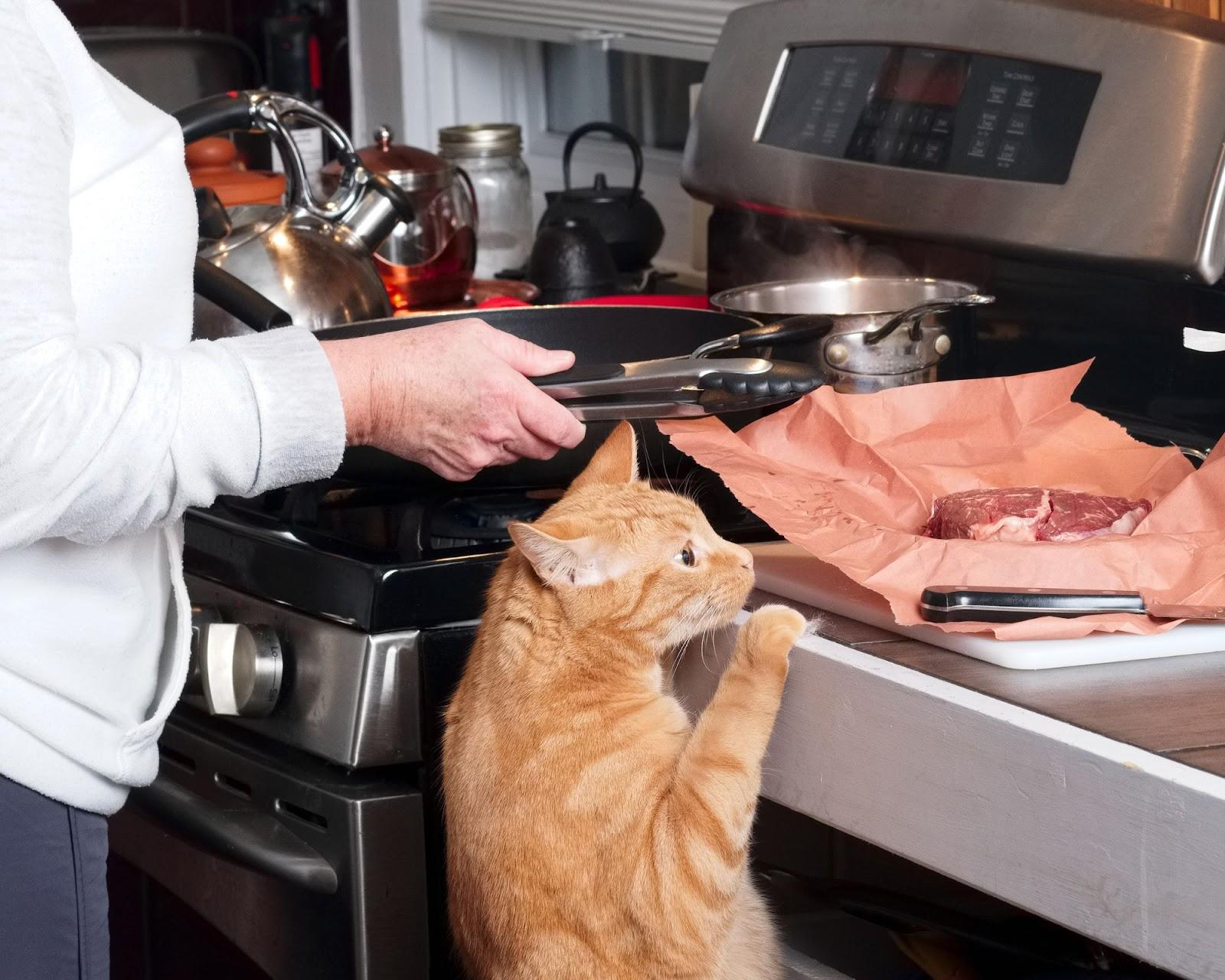 Cho mèo ăn no để tránh việc mèo lên bếp để tìm kiếm thức ăn.