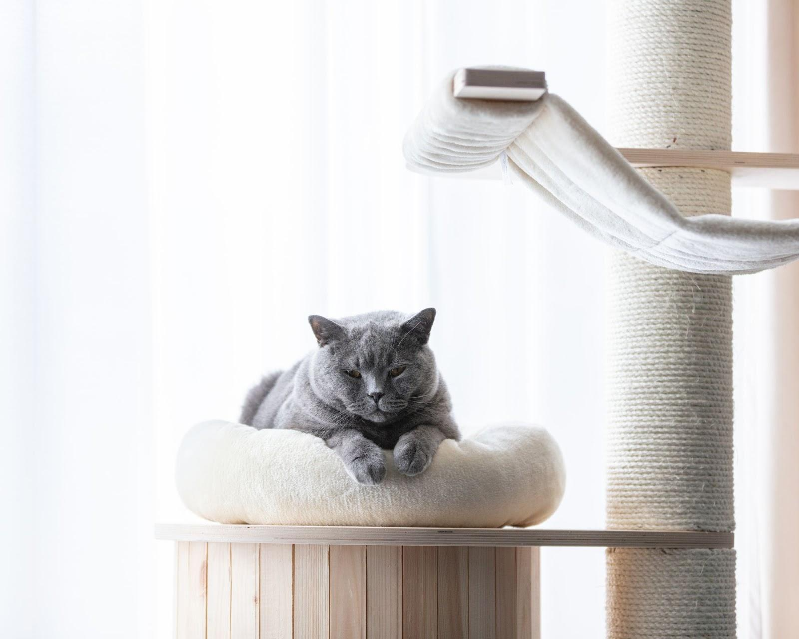 Tạo góc vui chơi riêng với đồ chơi, giường, ổ nệm để mèo cảm thấy thoải mái.