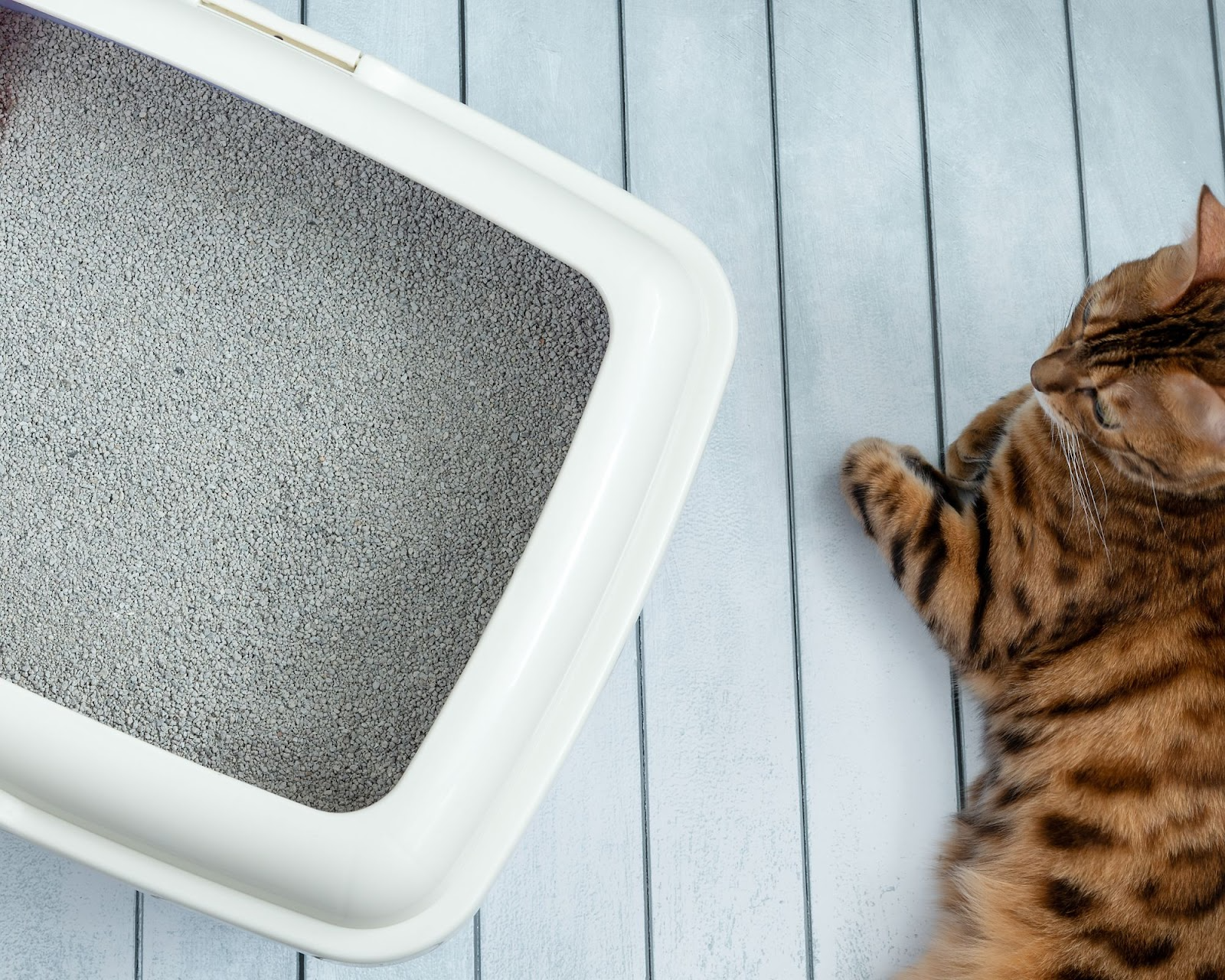 Cát vệ sinh: Loại vón cục, ít bụi, khử mùi tốt. Tránh cát có mùi hương quá nồng. Nên tìm hiểu các loại cát chất lượng, vì mèo có thể sẽ không đi vệ sinh nếu cát quá tệ