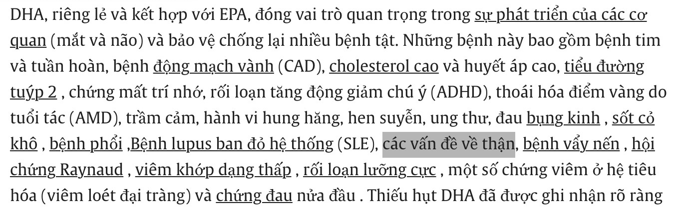 DHA kết hợp với EPA giúp điều trị các vấn đề về thận (Nguồn: Sindhu)